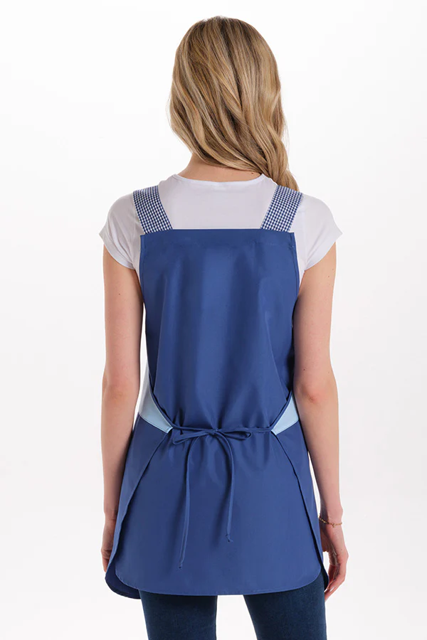 Encante crianças e facilite o seu dia a dia com este adorável avental feito em tecido azul, decorado com divertidos animais de táxi impressos. Confortável e prático, possui correias ajustáveis e um bolso central em caixa azul para guardar pequenos objetos. Detalhes requintados com rebocadores e botões que acrescentam um toque especial.
