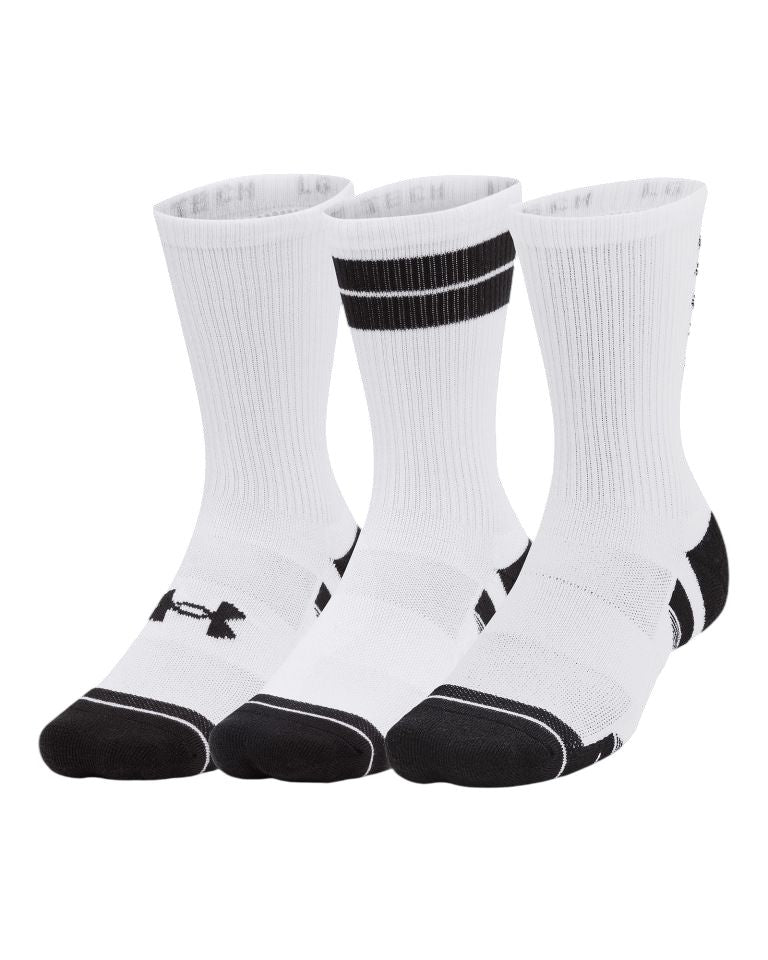 Chaussettes longues Under Armour conçues pour les hommes actifs. Leur tissu technique évacue efficacement la transpiration et sèche rapidement pour garder les pieds au sec. La coupe ajustée garantit un maintien sûr au talon, tandis que l’amorti moyen procure confort et protection tout au long de la journée. Les empiècements en mesh favorisent la ventilation et le soutien de la voûte plantaire aide à réduire la fatigue.