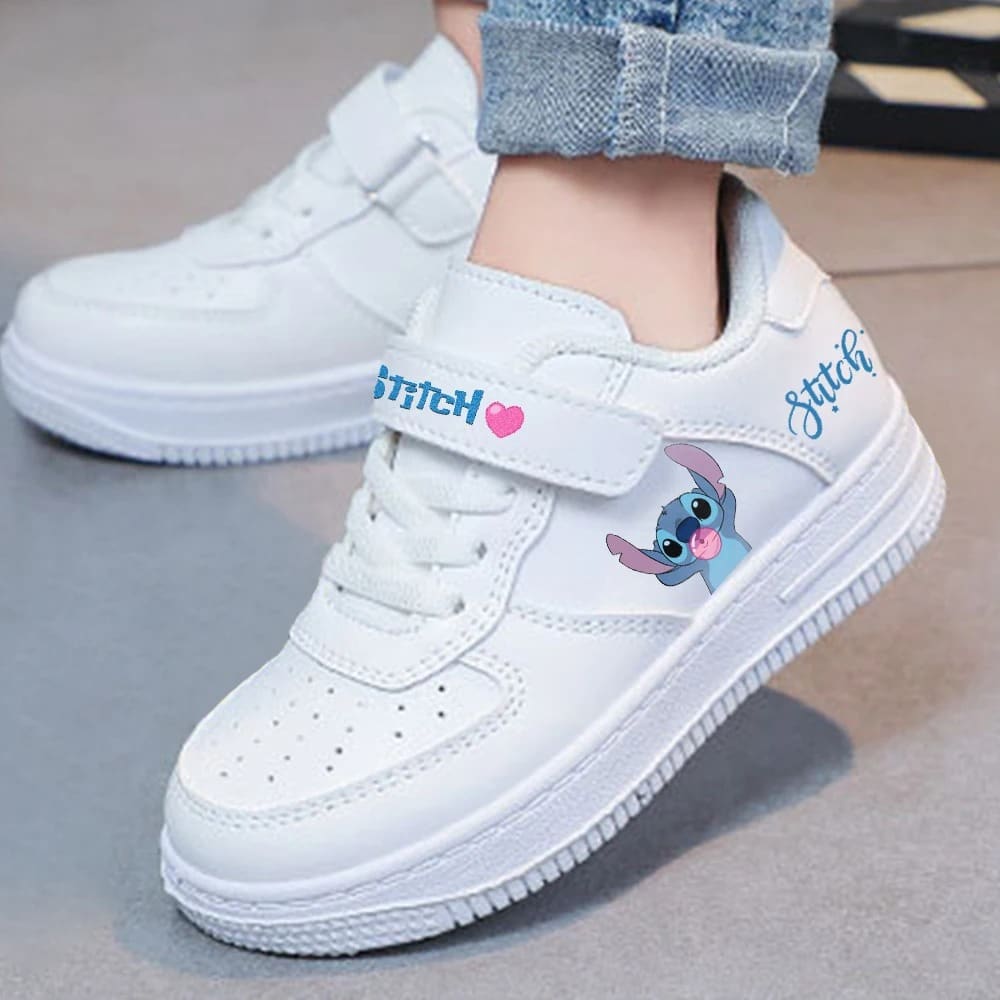 Les basket Stitch Fille sont un must-have pour toutes les jeunes fans de Stitch Ces baskets blanches, introuvables en magasin, sont disponibles dans une gamme de tailles allant de 28 à 40, pour s’adapter à tous les âges et toutes les pointures. Elles se distinguent par un motif adorable de Stitch en train de faire une bulle avec un chewing gum, apportant une touche ludique et mignonne à chaque pas.