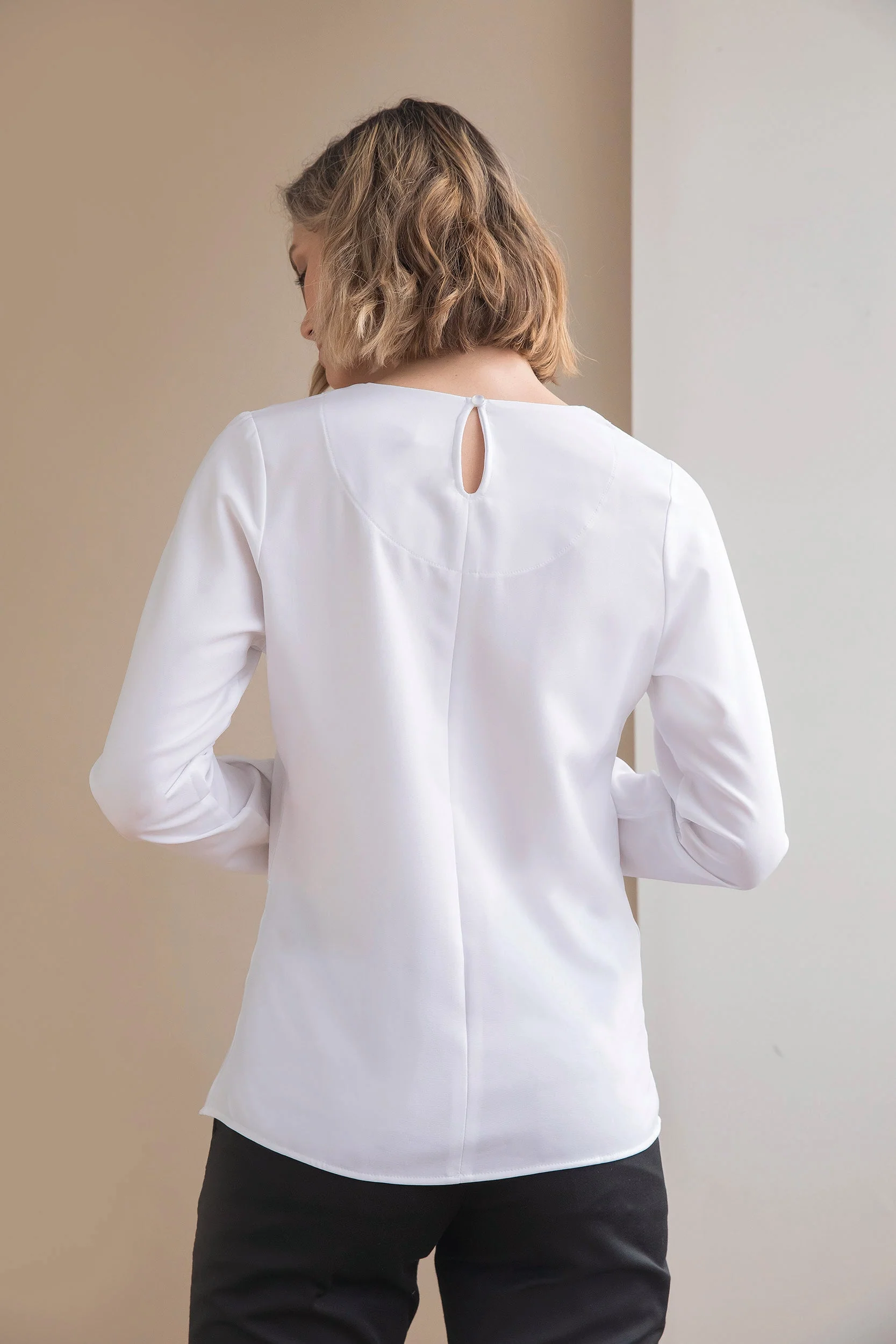 Com fios absorventes e antimicrobianos PUFY. Secagem rápida. Acabamento de qualidade e feminino. Gramagem 115 g/m² 100% Cofrex poliéster Pufy®: tecido inovador com toque de algodão. anti-UV. respirável e de secagem rápida. que não cria vincos. Decote com dobras decorativas e com botão na parte traseira. Manga curta. Bainha direita. Tratamento fácil. Gramagem 115 Dimensão