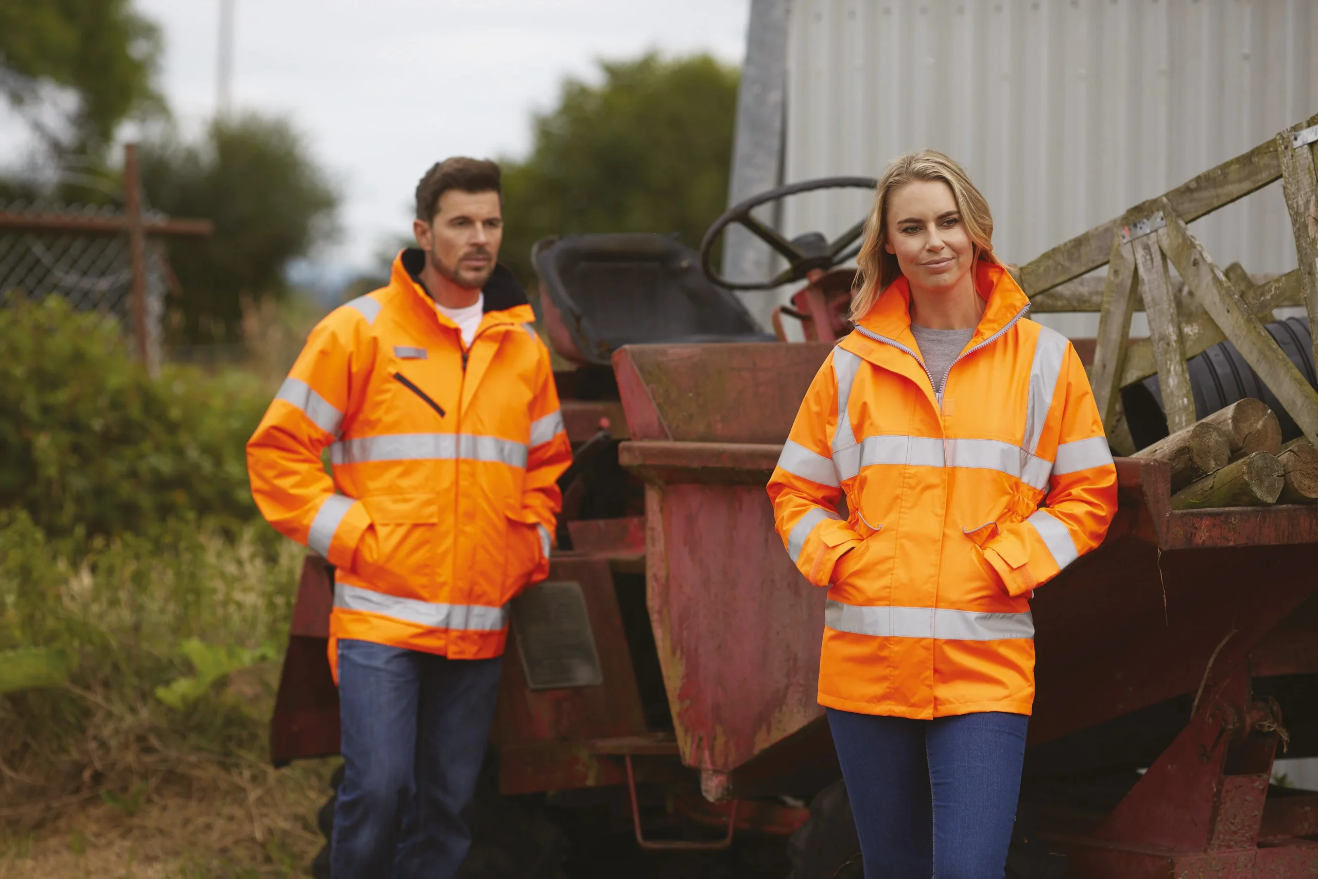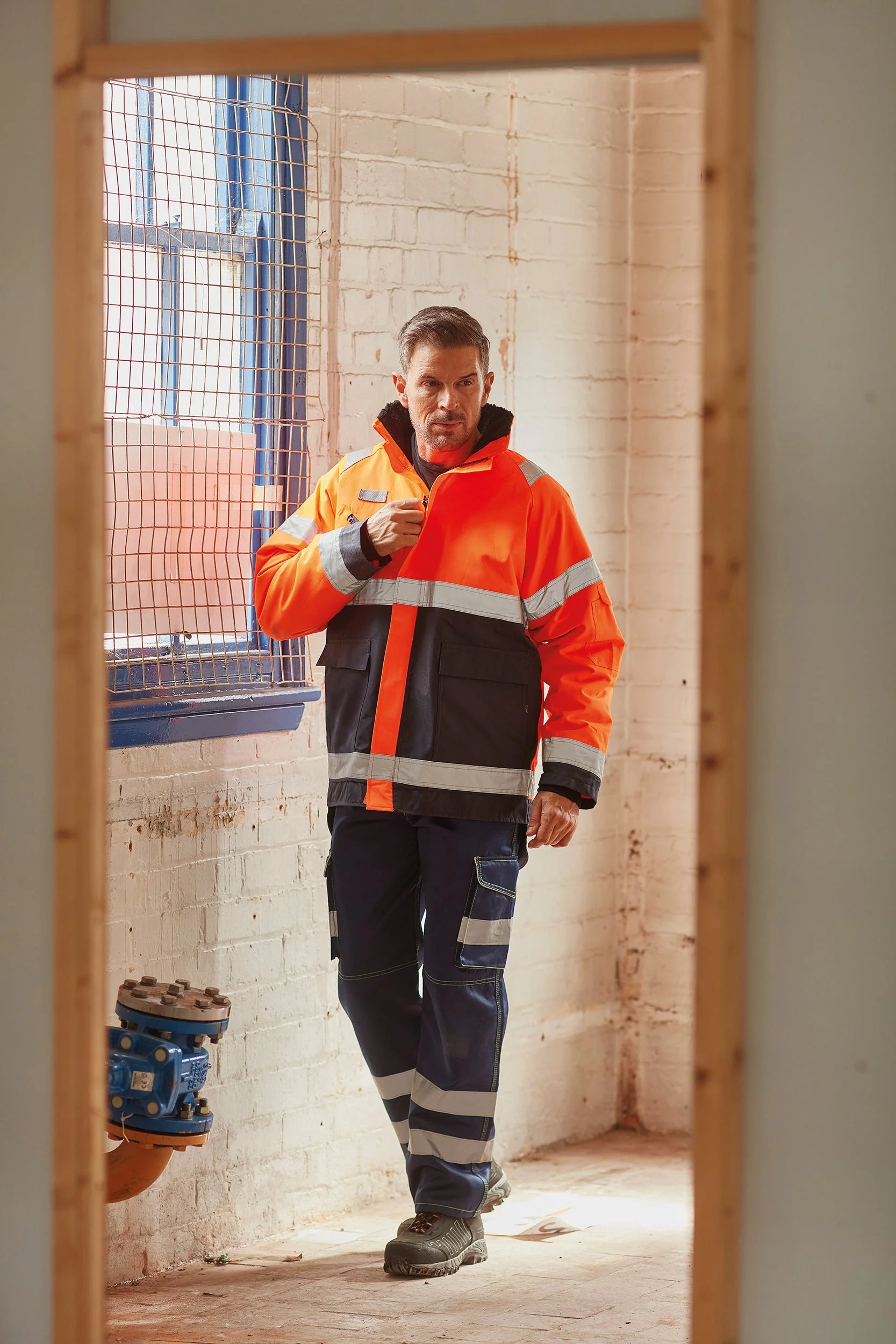 100% poliéster ripstop impermeável e respirável. Forro polar removível. Faixas reflectoras com costura dupla (5 cm de largura) no corpo e nos braços. 2 faixas reflectoras na parte superior dos ombros. Gola polar com capuz amovível. Fecho com cursor duplo resistente com pala com velcro. Bolsos exteriores frontais com acesso duplo pela parte superior e lateral. Bolso para canetas e telemóvel no braço esquerdo. Bolso no peito direito com fecho impermeável e bolso para documento de identificação. Presilha porta-rádio no peito direito. Acesso para personalização do lado esquerdo e na parte inferior. Em conformidade com as normas EN ISO 20471 de categoria 3, EN342:2004 de protecção contra o frio e a norma relativa ao «Vestuário de alta visibilidade» dos caminhos-de-ferro UK GO/RT 3279 Issue 8:2013 (somente na cor Hi Vis Orange).