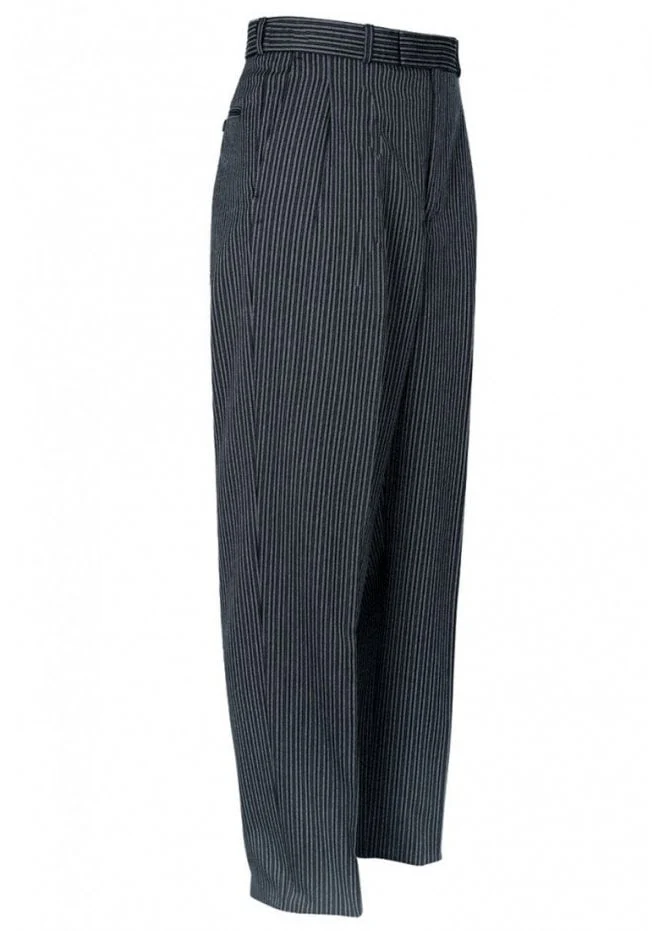 Calças clássicas masculinas com padrão risca de giz, ideais para um visual profissional e elegante.
