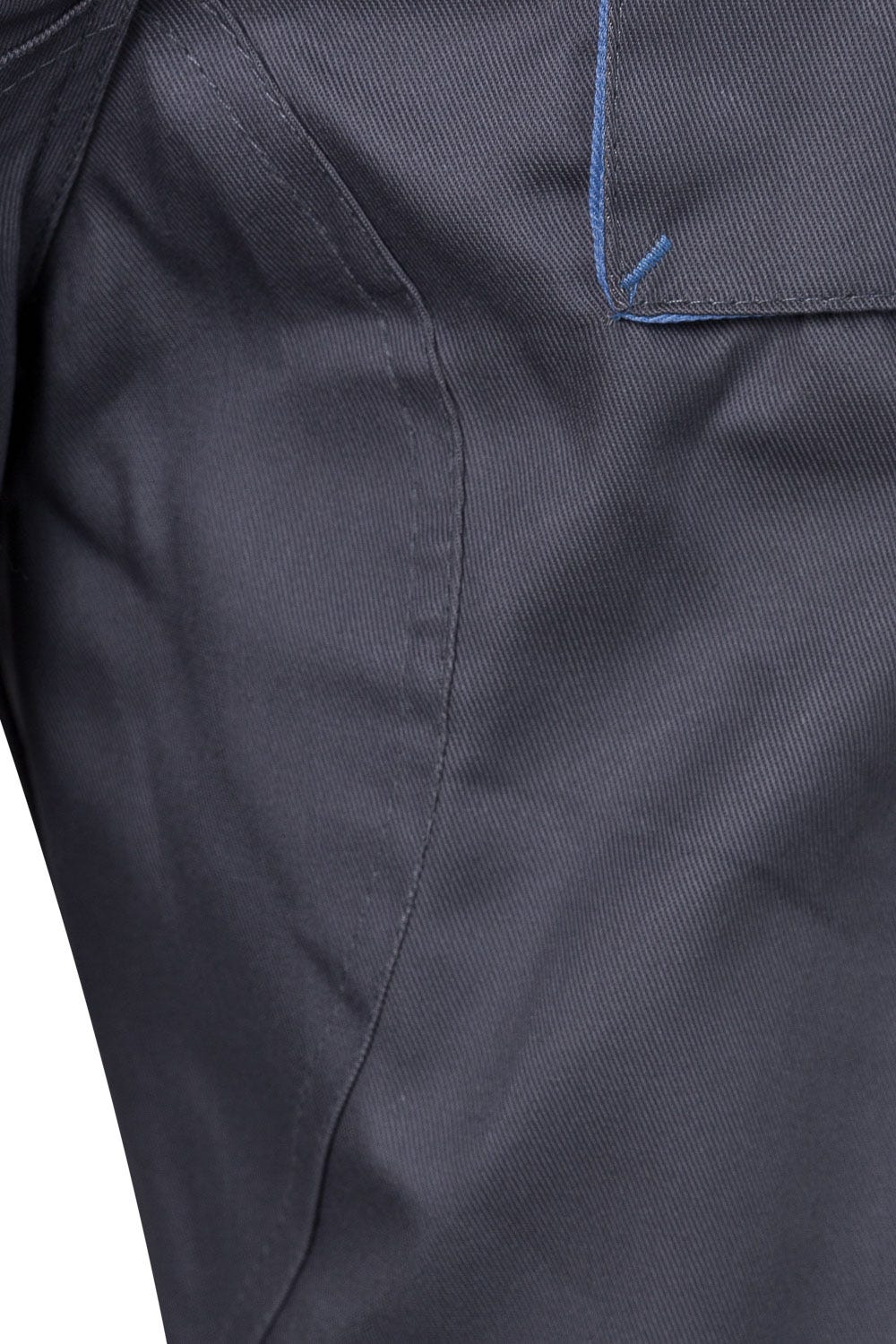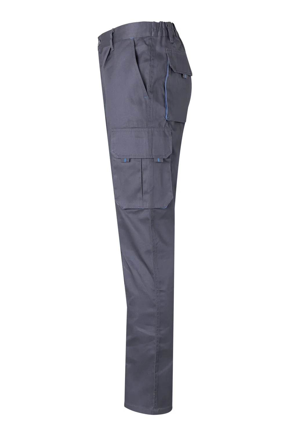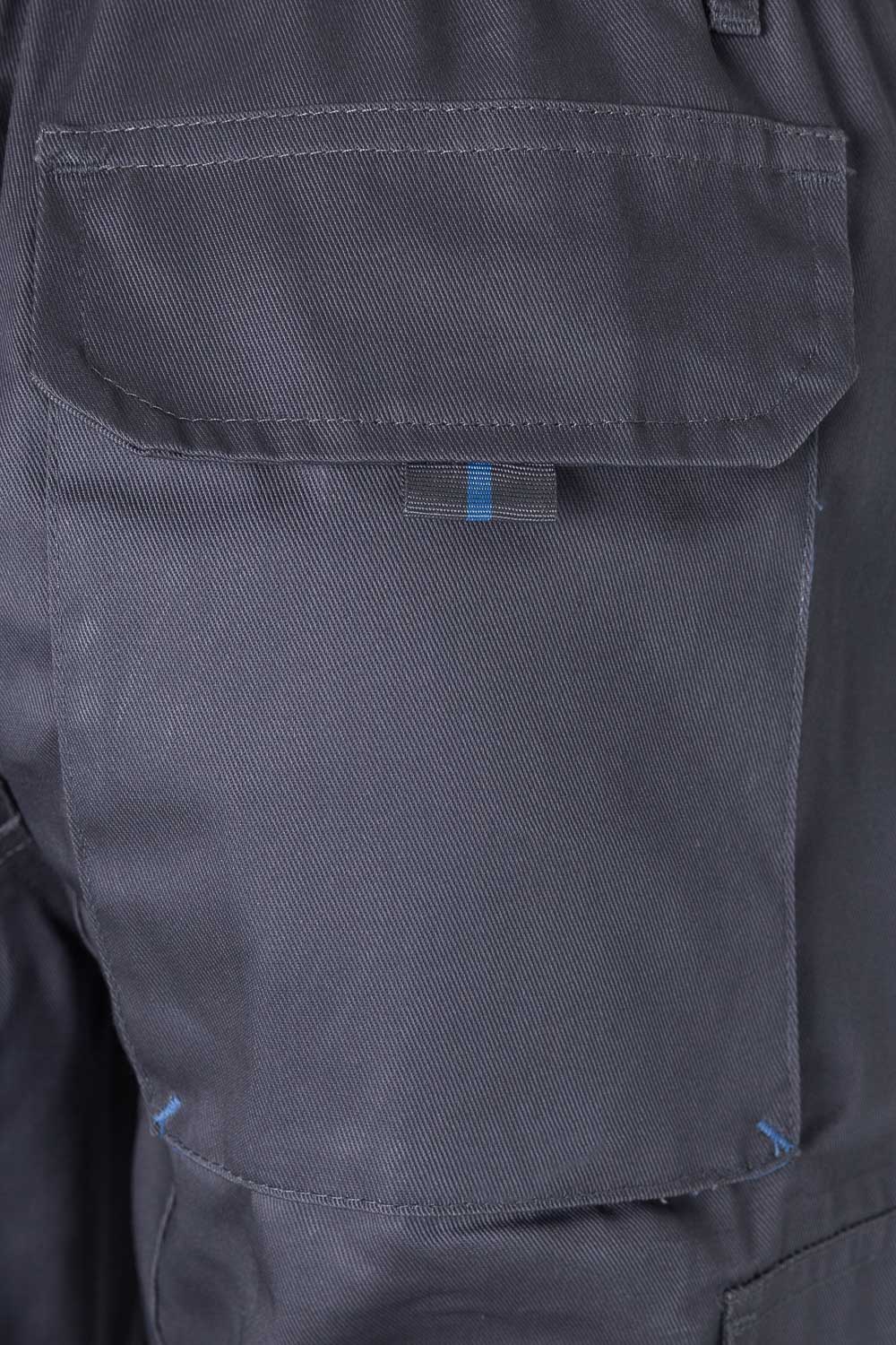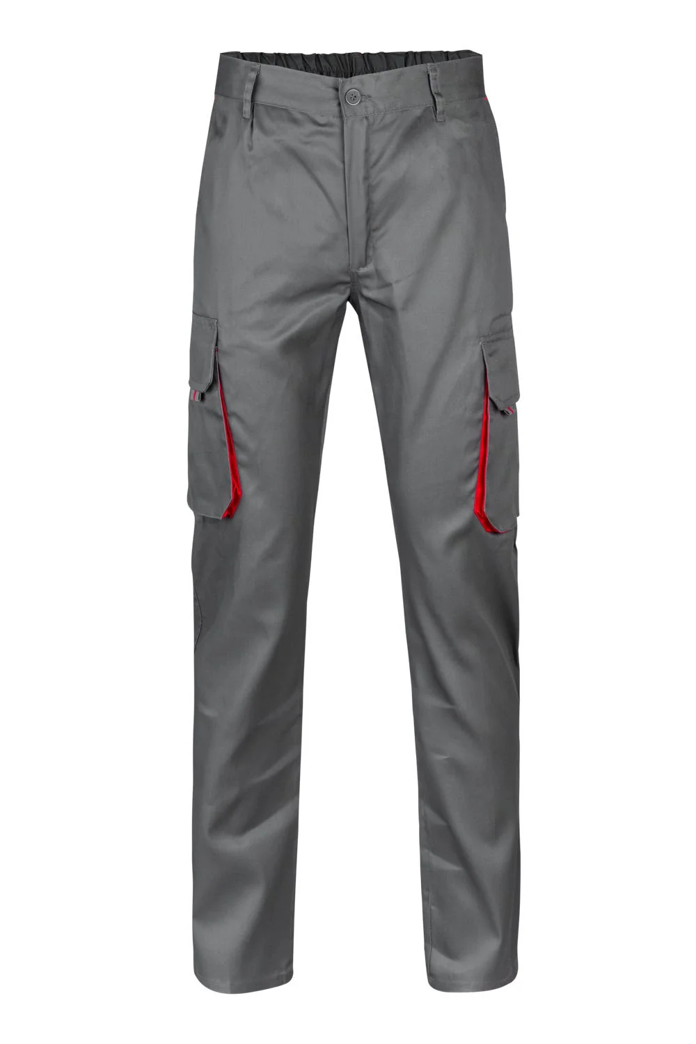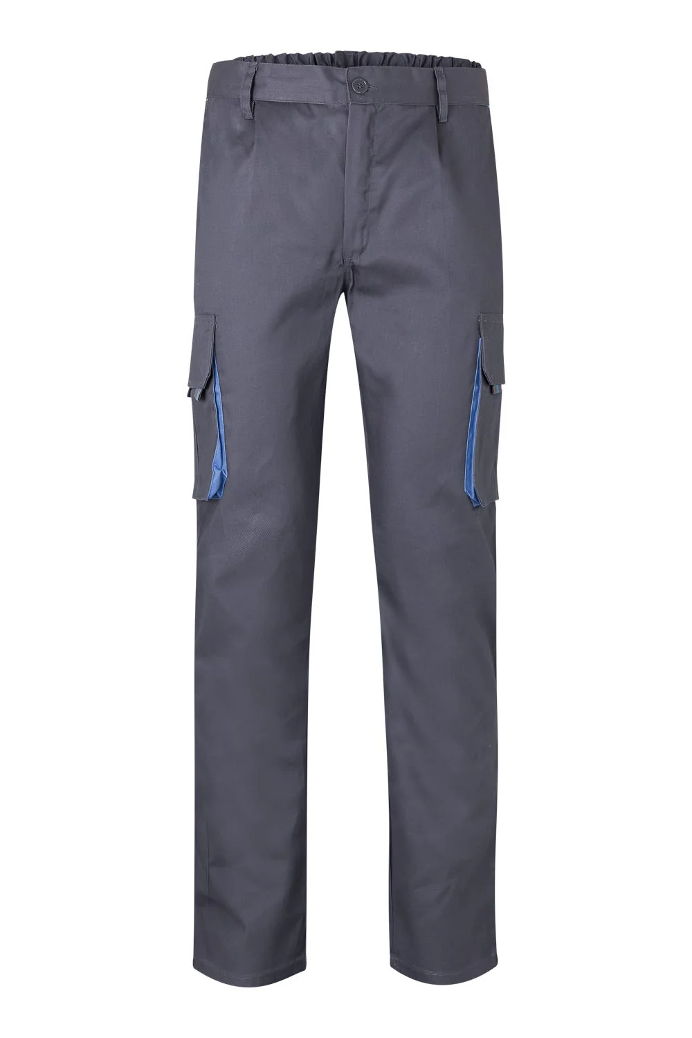 Fecho-ecler central e botãoCor de contraste nos foles, puxadores e presilhasReforço de tecido traseiroCós elásticoCostura dupla de segurançaPinças Seis bolsos:2 bolsos franceses2 bolsos de fole, com fole central, pala, velcro e puxadores2 bolsos traseiros de fole, com pala, velcro e puxadores Composição: Sarja. 65% poliéster – 35% algodão Gramagem 200 gr/m2 Dimensão