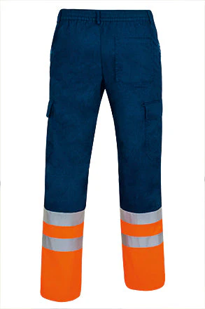 65% Poliéster/ 35% algodão. Tecido sarja 210 grs/m2. Banda refletora cosida. 2 bolsos na cintura. Certificado com a norma EN ISO 20471:2013 / A1:2016