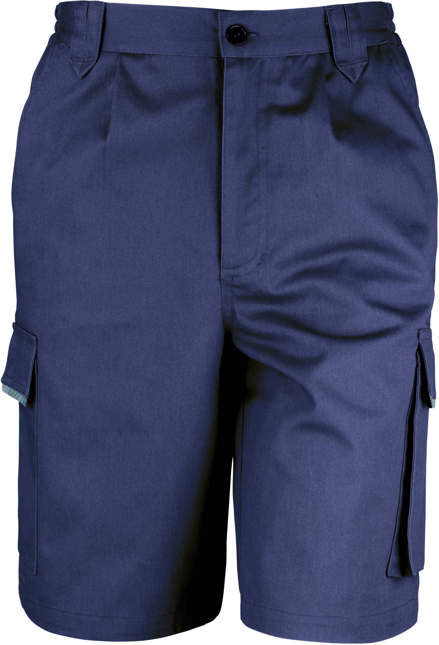 Calções corta-vento. Cós ajustável. Braguilha com fecho e mola de pressão. Presilhas na cintura. Costuras reforçadas com pesponto duplo. Multibolsos: bolsos laterais largos com acabamentos refletores, bolso de carga frontais com fecho em Velcro®, bolsos traseiros, bolso para telemóvel, bolso para fita métrica, 2 bolsos laterais fundos e presilha para martelo.