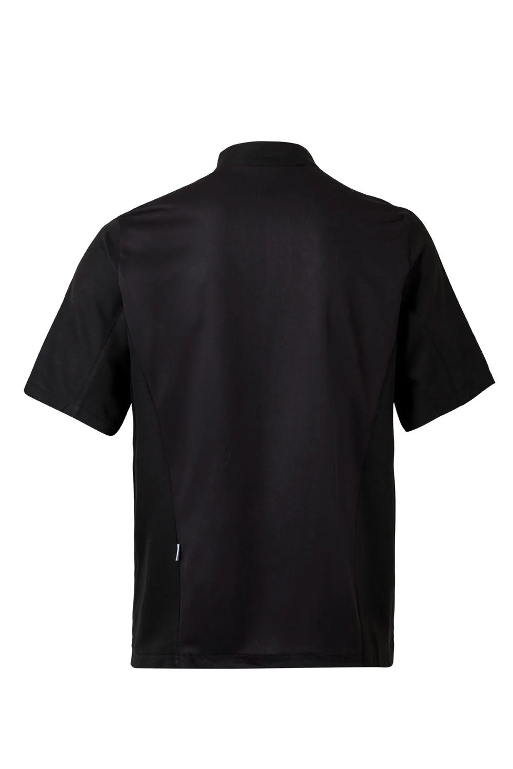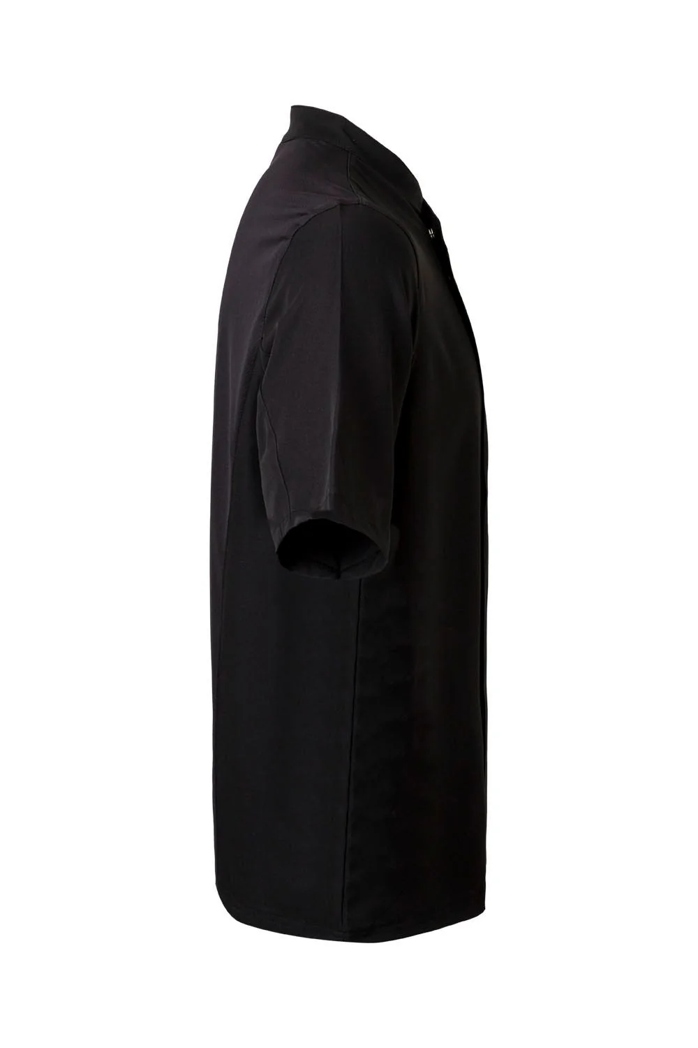 Esta combinação de tecidos proporciona durabilidade, facilidade de limpeza e excelente regulação térmica, mantendo você fresco e confortável durante longas jornadas na cozinha.