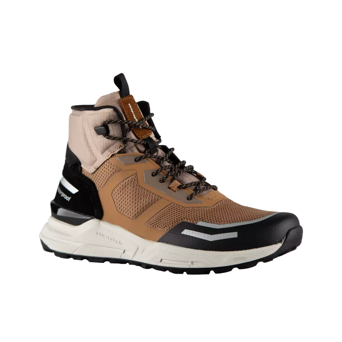 Bottillons plein air pour femmes Chlorophylle. Faits de tissus maillées et de cuir synthétique. Doublure respirante désodorisante à séchage rapide bactériostatique 100% recyclée. Membrane résistante à l’eau Chloro-DryMax. Semelle extérieur en caoutchouc Chloro-Grip.