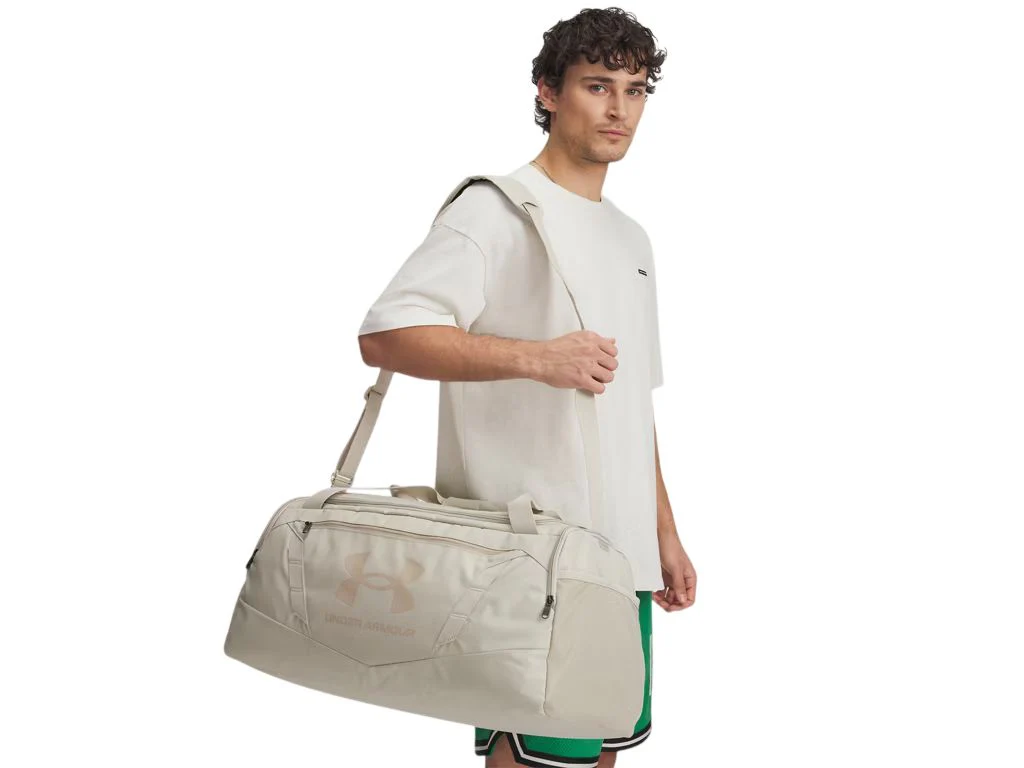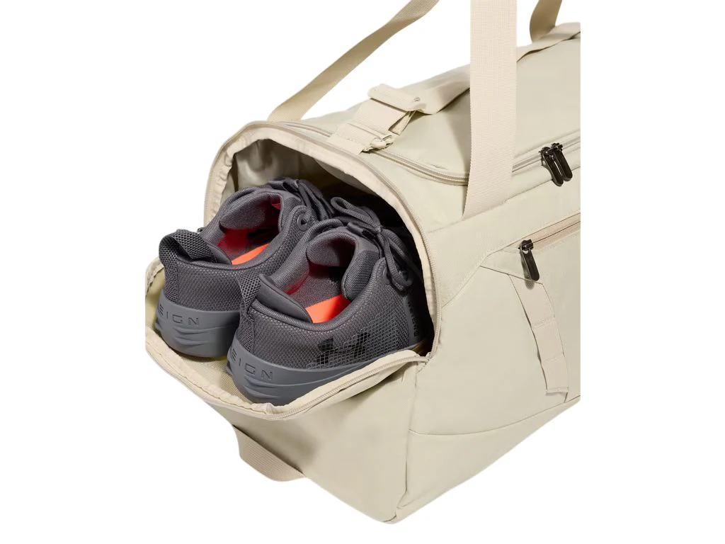 Ce sac de sport de 58 litres est conçu pour le transport et l’organisation de votre équipement. La technologie UA Storm rend le sac résistant à l’eau et durable. Il comprend une grande poche ventilée, des poches intérieures pour l’organisation, une grande poche zippée à l’avant et des points d’attache en sangle Molle. Il possède également une double poche pour bouteilles d’eau et une bandoulière réglable pour un port confortable.