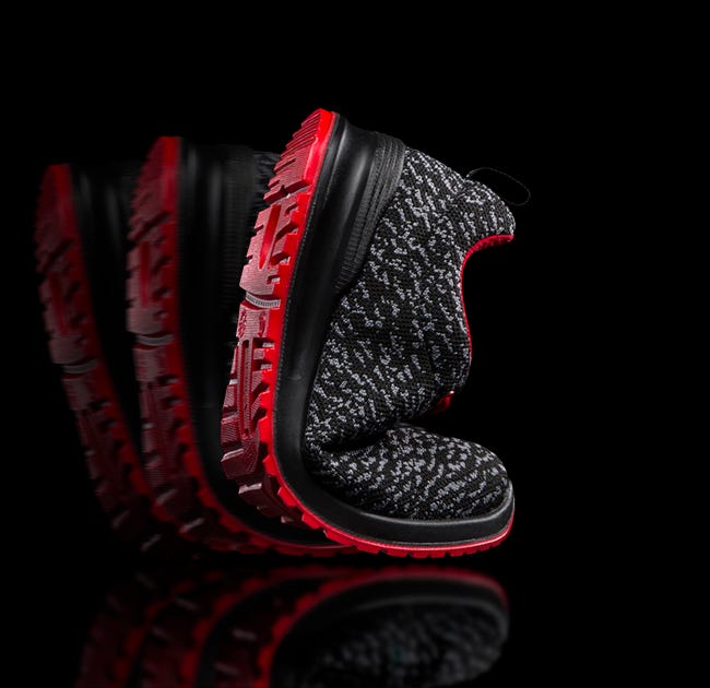 Corte/Planta do pé: Fly Knitting cloth. Menos costuras, melhor ajuste ao pé. Maior flexibilidade e respirabilidade.