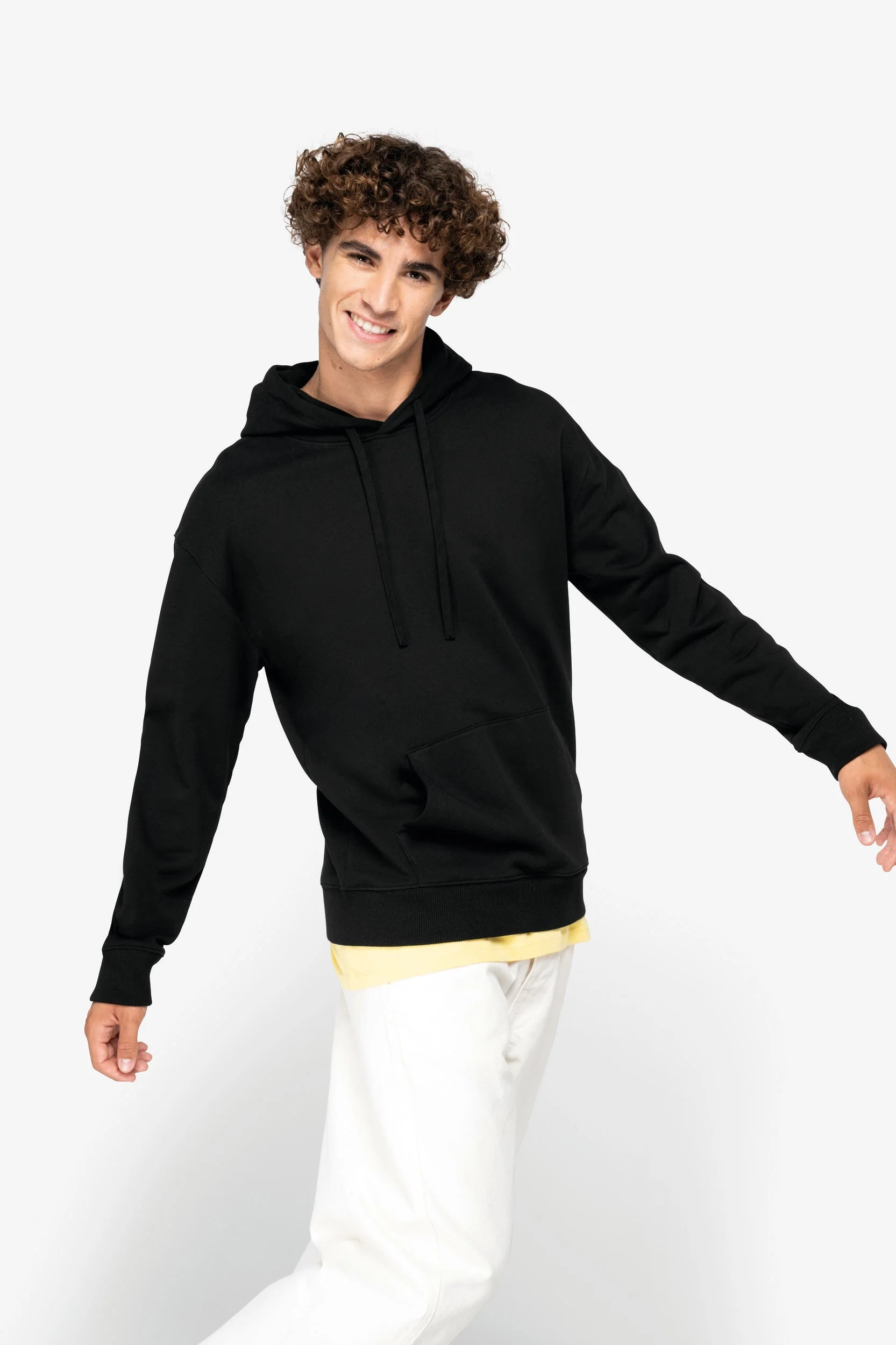 Descrição do Produto Superfície perfeitamente lisa para uma personalização excepcional. No label: 100% personalizável à imagem do seu projecto. Uma gramagem alta para um aspecto excelente. Resumo 100% algodão biológico. Algodão penteado. Corte direito. com ombros descaídos. Interior 3 fios em French Terry. Meia-lua nas costas. Bolso à canguru. Com banho de enzimas. Capuz forrado […]