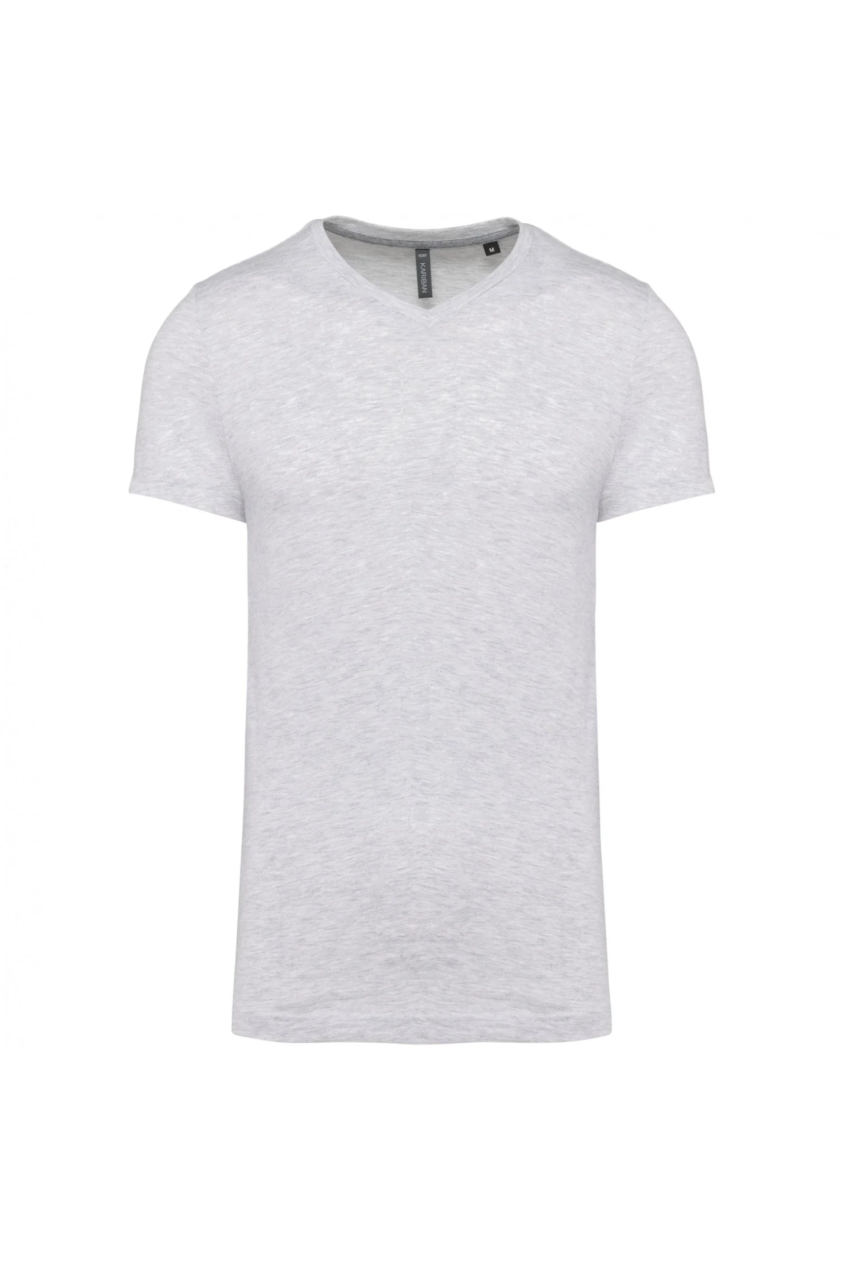 100% algodão lavado com enzimas para um toque suave (Ash Heather : 98% algodão/2% viscose. Oxford Grey : 90% algodão/10% viscose). Decote V. Corte justo. Tapa-costuras em contraste em Oxford Grey em todas as t-shirts de cor, excepto nas t-shirts brancas em que o tapa-costuras é branco e na cor Oxford Grey o contraste é Dark Grey. Acabamento com costura dupla. Certificado STANDARD 100 by OEKO-TEX®N° CQ1007/7, IFTH.